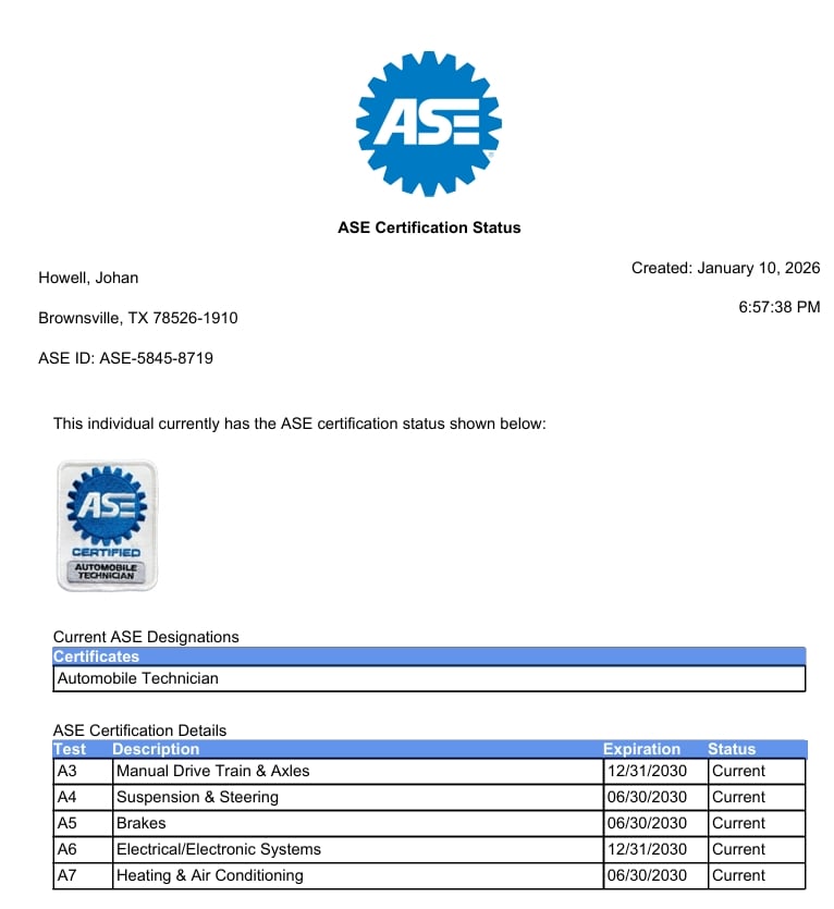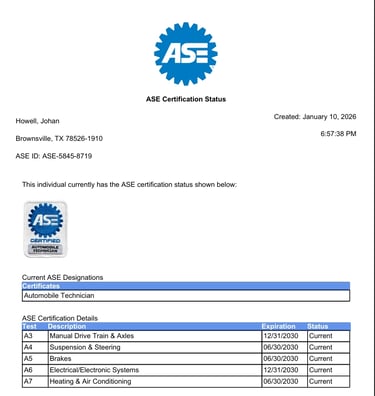 Blacktop Auto Care is owned and operated by an ASE-certified automotive technician with 4 years of hands-on experience as a dealership technician. Every service is performed using manufacturer-approved procedures, professional-grade tools, and the same standards found in a dealership, delivered with the convenience of mobile service.